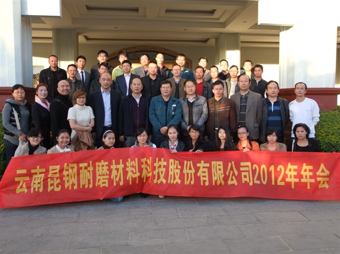 云南昆鋼耐磨材料科技股份有限公司2012年年會于2012年11月24日在昆明市尋甸縣星河溫泉度假酒店召開,出席本次年會的集團領導及股東代表有:昆鋼重裝集團黨委書記張代儒(左四)、昆鋼重裝集團常務副總、昆鋼耐磨材料公司董事長李亞鵬(左三)、昆明理工大學材料科學與工程學院院長蔣業(yè)華(左五)、昆明理工大學分析測試中心主任周榮峰(左七)。