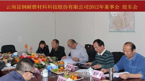 2012年3月24日,云南昆鋼耐磨材料科技股份有限公司首屆董事會第七次會議、股東會第五次會議在黑林鋪前街59號團(tuán)鋼廠院內(nèi)(原團(tuán)鋼子弟小學(xué))3樓會議室勝利召開。會議由董事長李亞鵬召集和主持,云南昆鋼重型裝備制造集團(tuán)有限公司董事長兼總經(jīng)理黃開萬、昆明新云欽耐磨材料總廠董事長馮煥欽、昆明理工大學(xué)材料科學(xué)與工程學(xué)院院長蔣業(yè)華等......